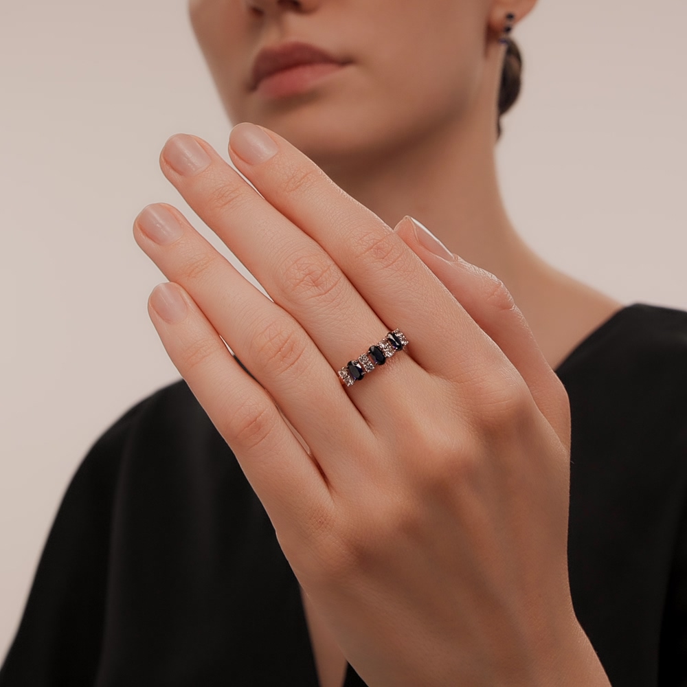 Кольцо с 3 сапфирами синтетическими, 0.75 карат, тип огранки Б;