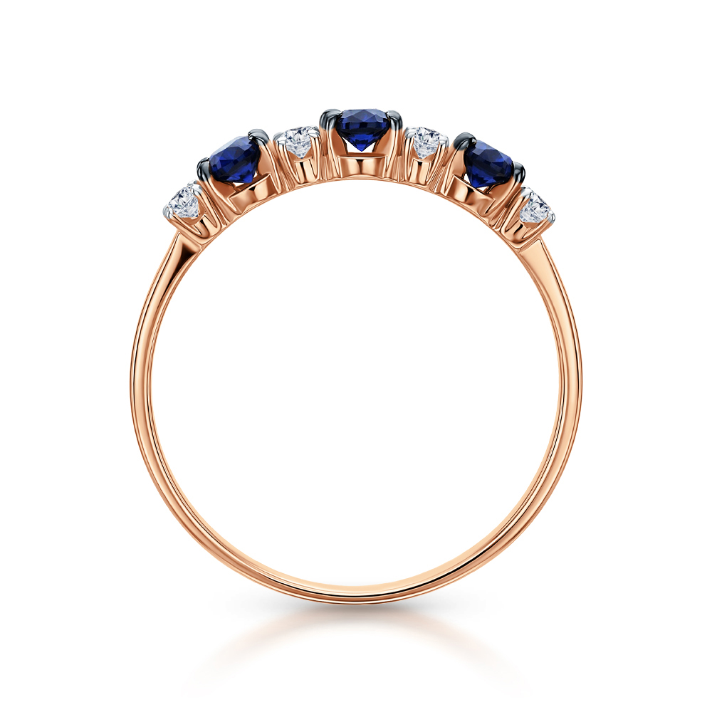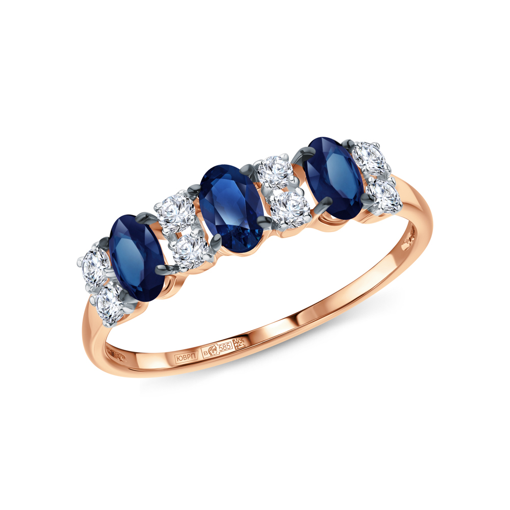 Золотое кольцо с сапфирами природными и сапфирами выращенными