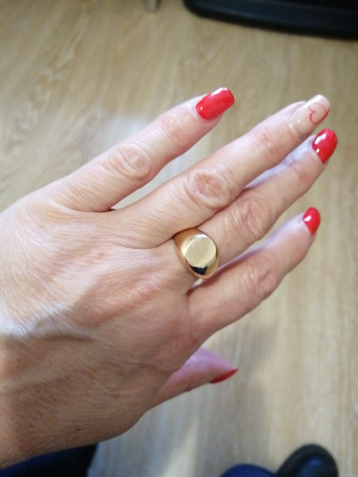 Давно хотела такую печатку, заказала эту и форму "сердечко", ориентировалась на последнюю, но, получив заказ я сразу выбрала эту модель, она стильная, модная, подходит под любой стиль в одежде. Покупкой Я Очень довольна! Вес у меня меньше, чем в рекламном варианте изделия (меньше 2 г. у меня, хотелось бы побольше ☺☺) , кольцо полое, но оно смотрится очень эффектно и презентабельно. Идёт в размер (ношу 17.5) Спасибо Санлайту за красивые вещи 😀💍👍!