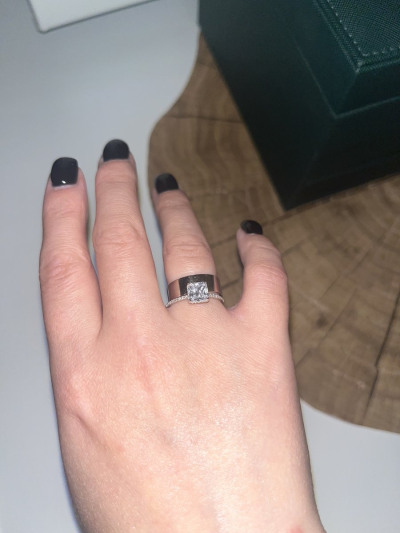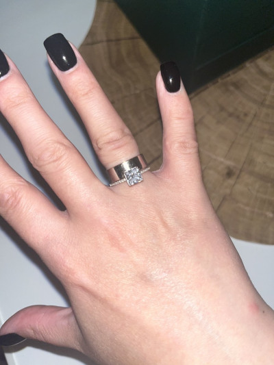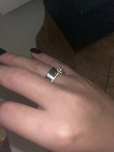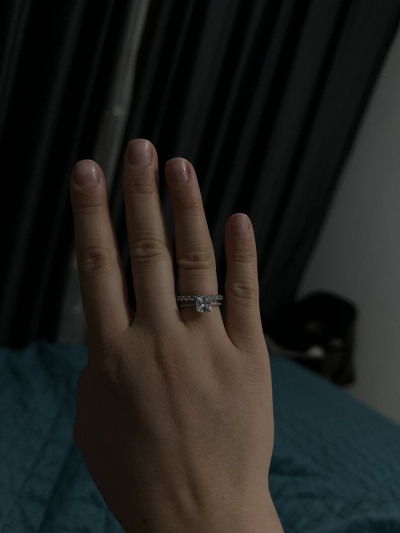 Камни сверкают до безумия. Очень красивое колечко, брала к обручальному, вообщем дорого - богато. Размер у меня 16,5, немножко болтается, но это не критично.