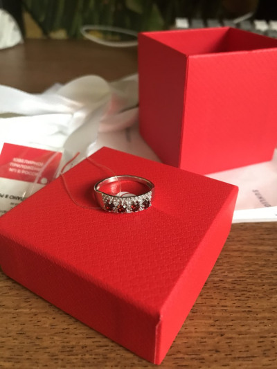 Колечко такое нежное, просто загляденье, камешки играют на солнце и доставка была быстрая, красиво упаковано, спасибо большое!