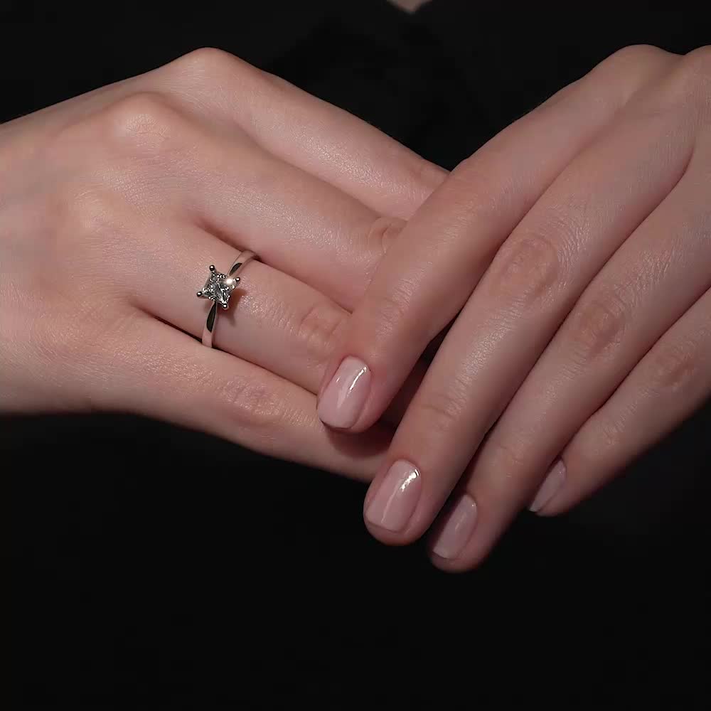 Кольцо с 1 бриллиантом природным, 0.9 карат, огранка принцесса 65 граней, цвет 3, чистота 7, тип огранки А;