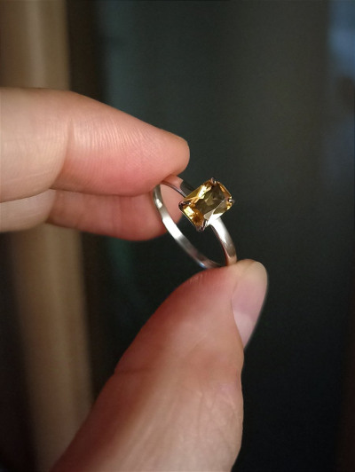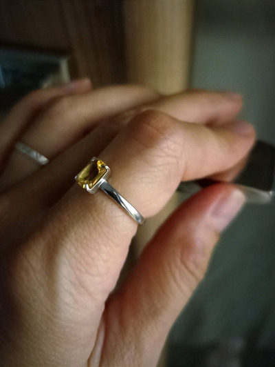 Как все пишут – очень красивое колечко! Я в восторге. Не мелкое, но аккуратное. Прекрасная огранка, яркий приятный жëлтый цвет цитрина. Летом отражает солнце, а зимой будет напоминать о лете. Форма подходит на любой палец. Купила по прекрасной.