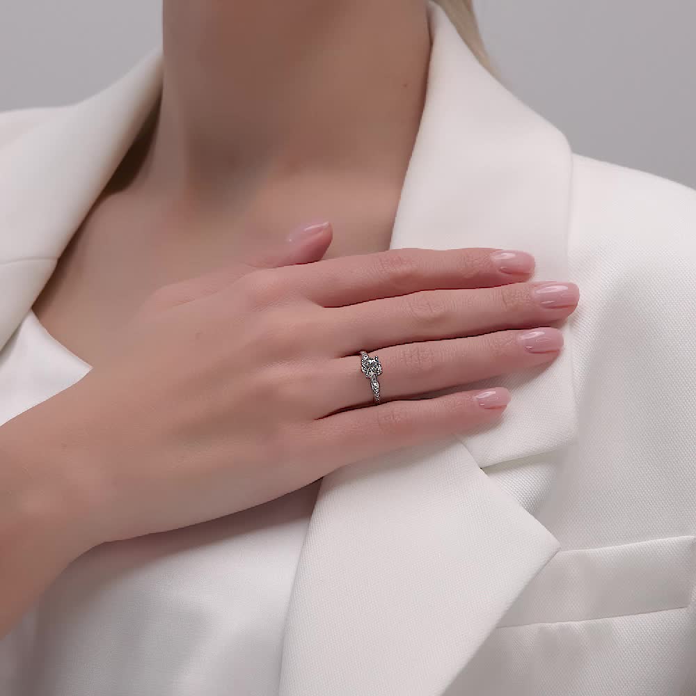 Кольцо с 1 бриллиантом природным, 1 карат, огранка круг 57 граней, цвет 5, чистота 5, тип огранки А;