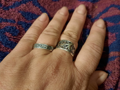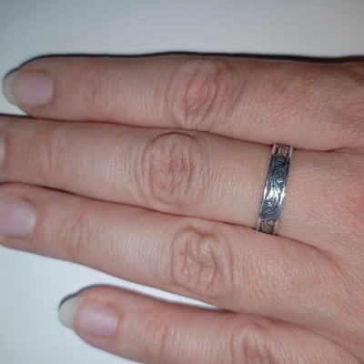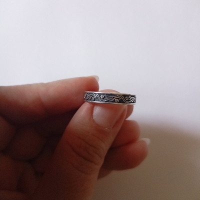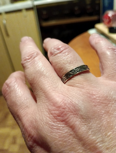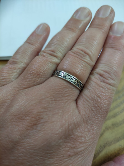 По фото на сайте думала, что кольцо с чернением. По факту, его не оказалось. Зато оно составило идеальную пару другому кольцу, купленному в этом же магазине. Покупкой довольна.