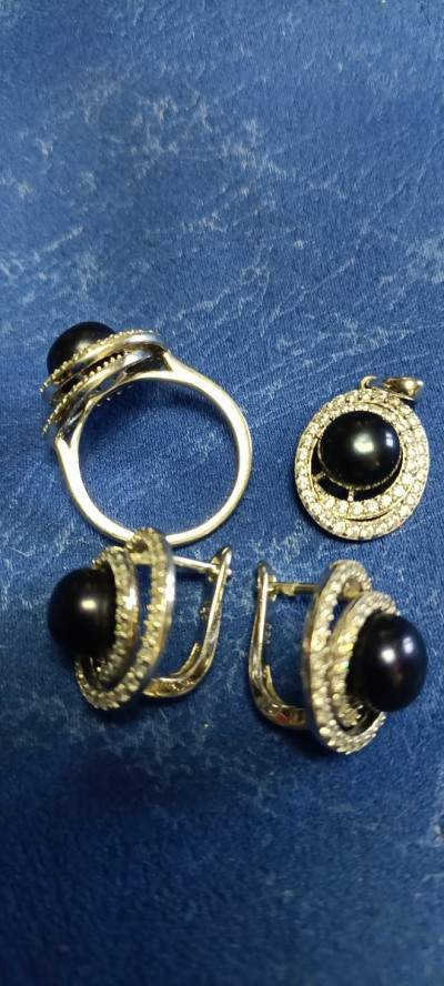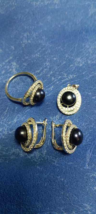 Приобретала кольцо с синим жемчугом в ансамбле с белыми искусственным фианитами