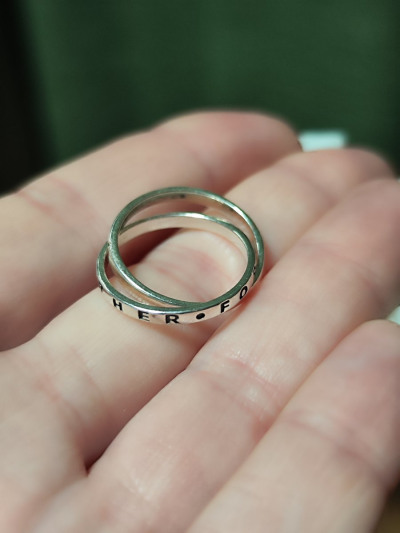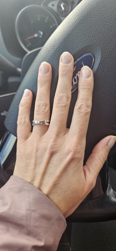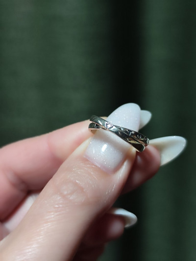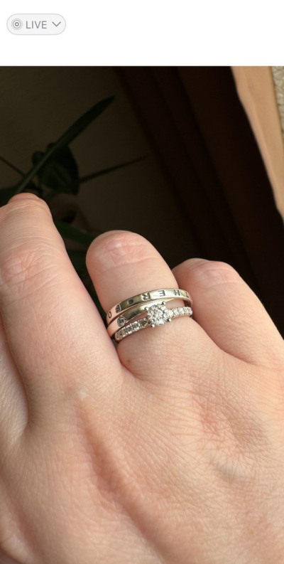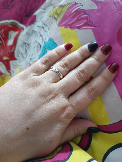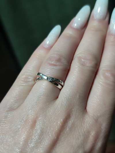 Думала буду переодически носить вместо обручального, но рядом с белым золотом и бриллиантами кольцо сильно проигрывает.