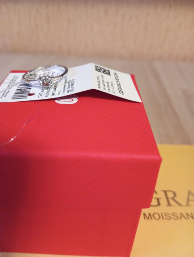 Колечко манило меня долго, решилась, как только почитала про свойства муассанита. Глаз не оторвать от колечка, костромские мастера молодцы! Спасибо Санлайту.