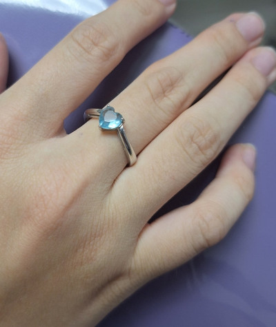 Красивое колечко с голубым сердечком. Аккуратно смотрится на руке. Качество колечка отличное.