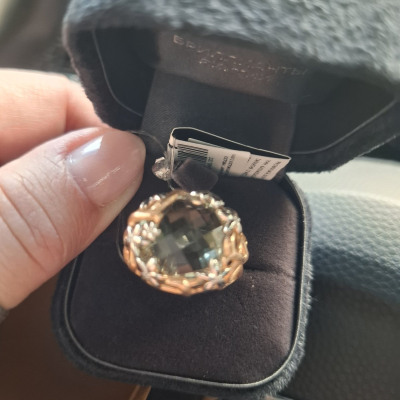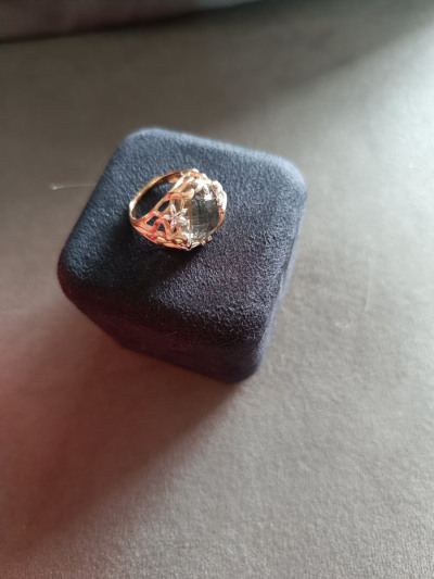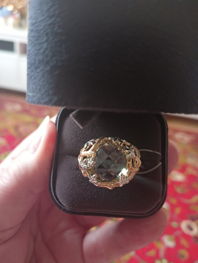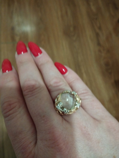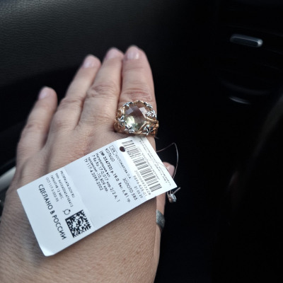 Купила очень красивое колечко, необычное и очень нежное, в каждом цветочке по брильянтику, заказывала два колечка и выбрала более насыщеный цвет, хотя колечко под разными углами меняет цвет то светлее ,то темнее.