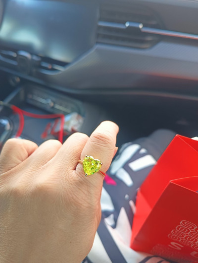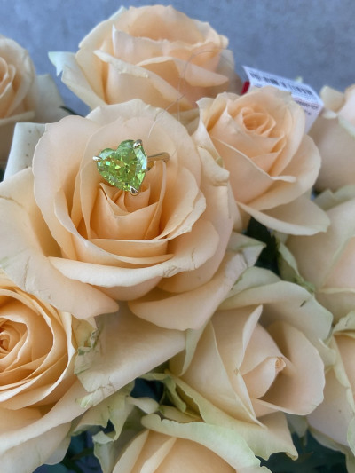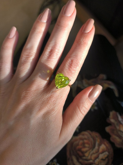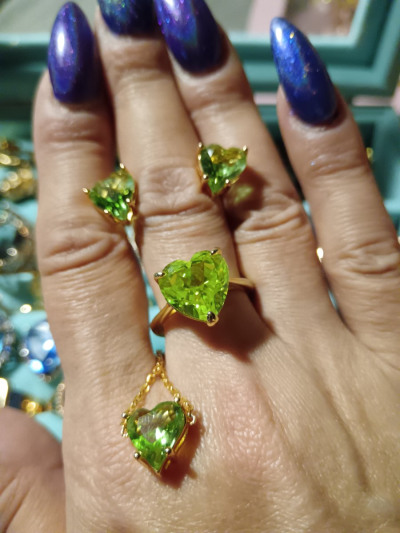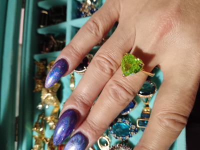 Шикарное кольцо, цвет камня очень яркий, неоновый. Собрала комплектом. Камень ярко играет, переливается красиво. Для лета просто шик, да в любое время года создаёт летнее настроение