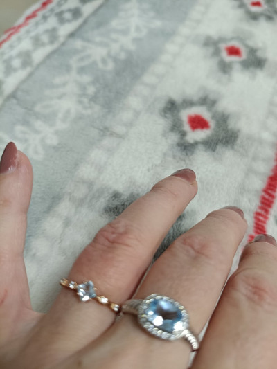 Красивое колечко, тонкое, элегантное, мило блестит. Понравилось, что фианиты и топаз очень выделяются. Как будто есть только камешки и они парят без окантовки
