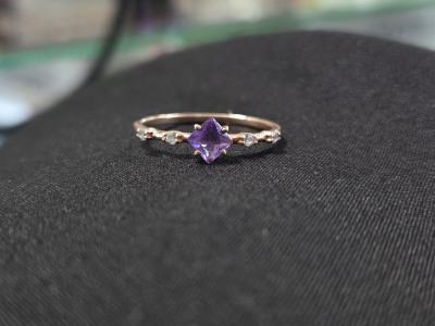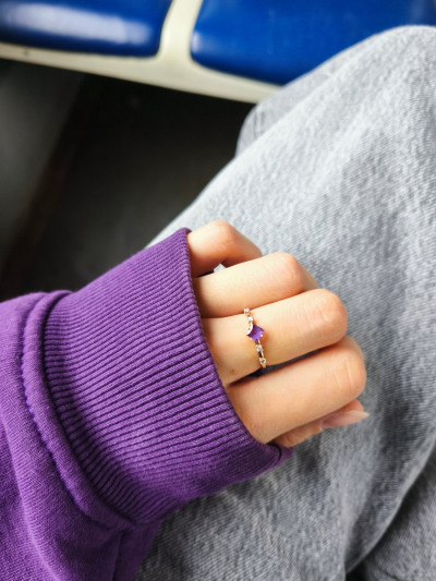 Кольцо с 1 аметистом природным, тип огранки Б;