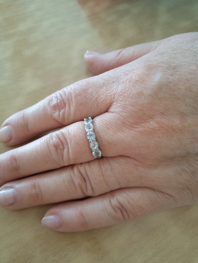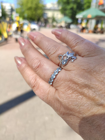 Очень изящное, аккуратное колечко. Камни переливаются на свету. Давно искала изделие с топазами - вот то, что я хотела.