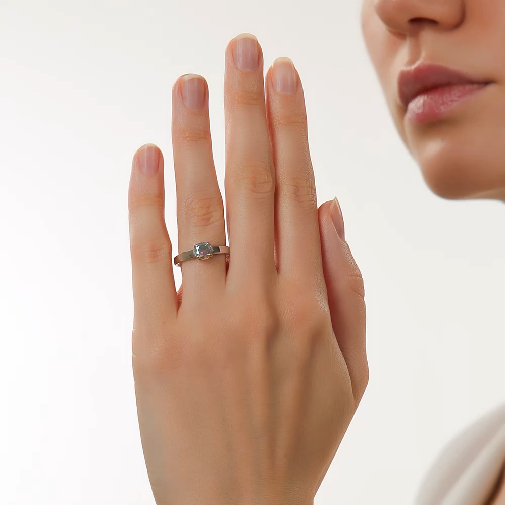 Переливается бесконечно! Таких камешков еще не видела! Очень красивое колечко,купила три комплекта в подарок. Любая девушка и женщина оценит и будет довольна! Ошеломляющая красота!