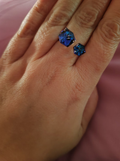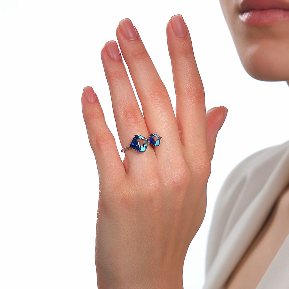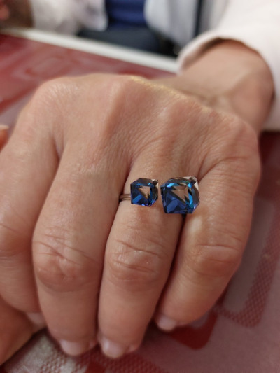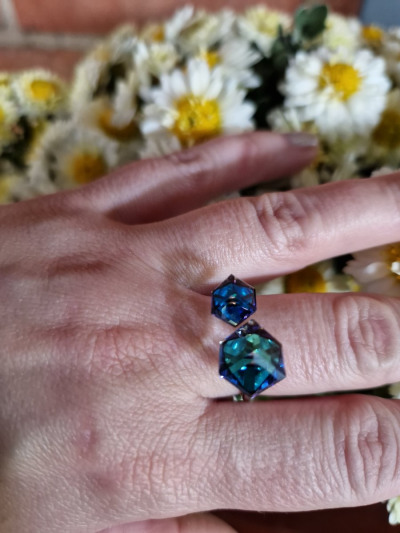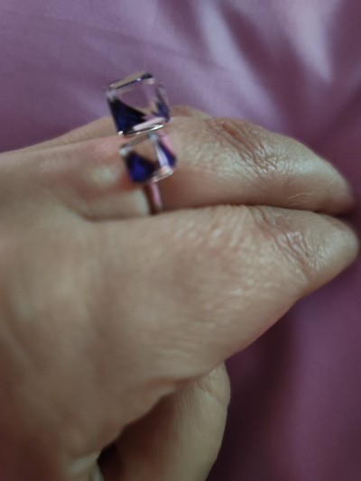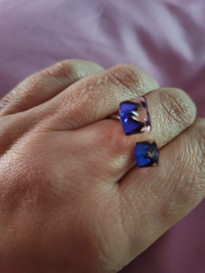 Кольцо интересное, привлекает внимание. Камни меняются от прозрачного до ярко синего цвета.