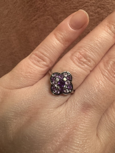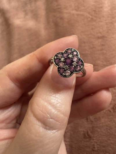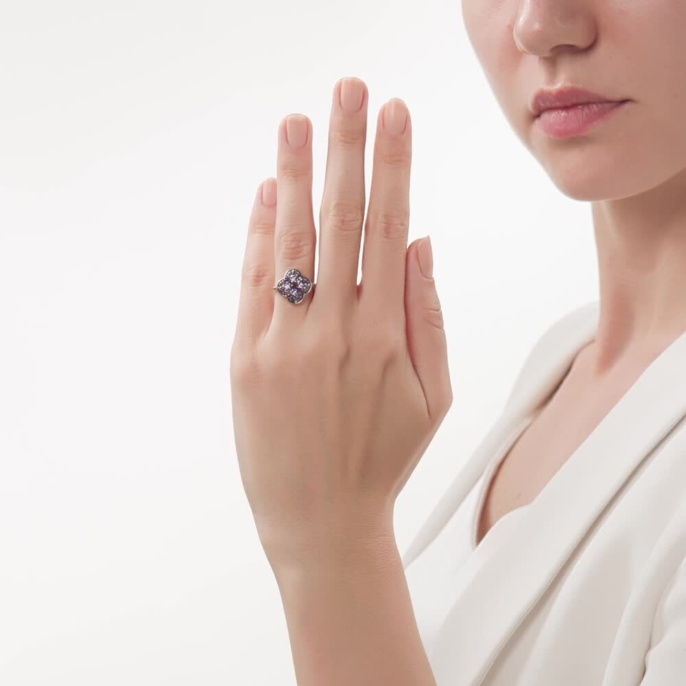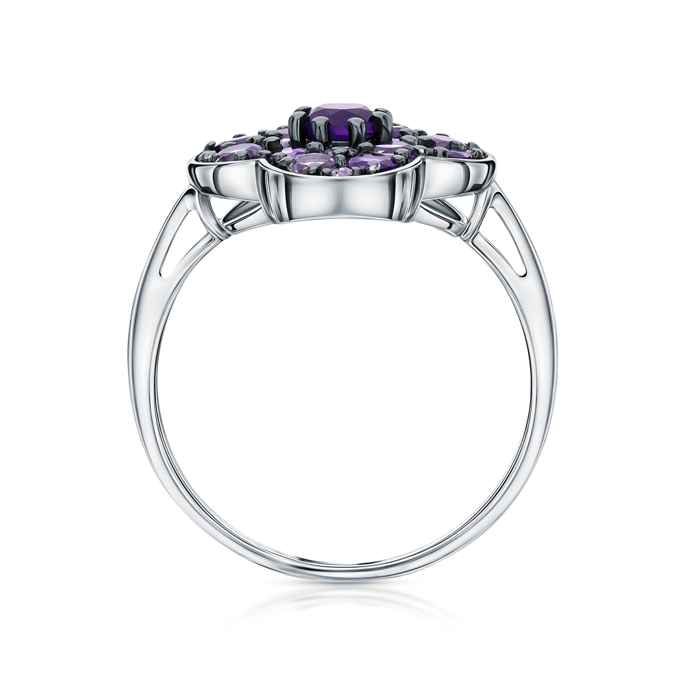 Серебряное кольцо с фианитами и аметистами