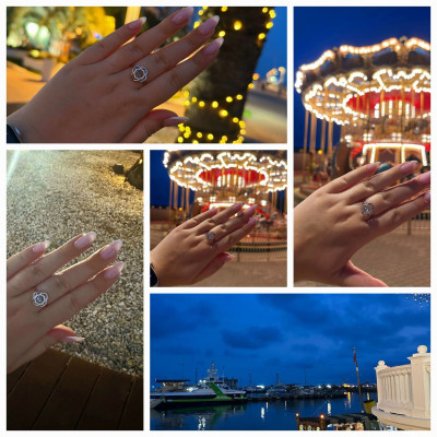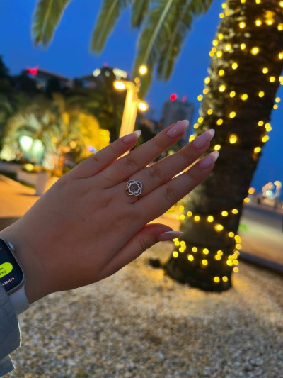 Ажурное кольцо, интересно сделано. В реальности ещё лучше. 💍Очень похоже на белое золото с голубым танцующим бриллиантом💎 В городе Сочи тёмные ночи, но кольцо как яркая звездочка 🌠 сверкает даже в темноте 🏙💙🌃 Фото прилагаю📸