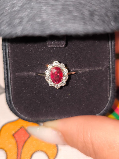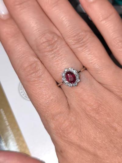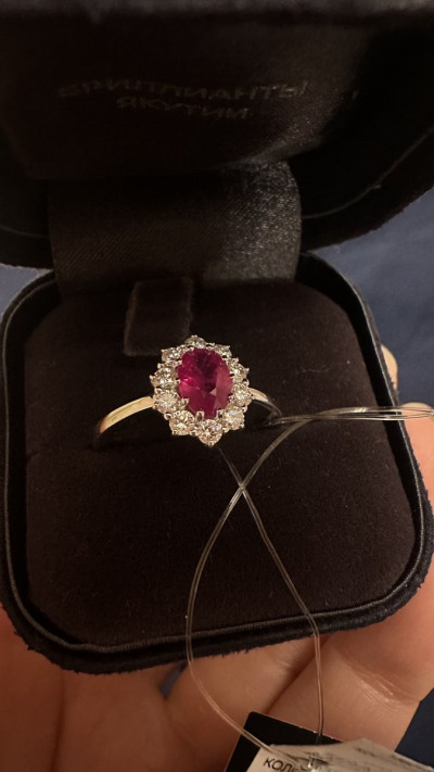 Самое любимое колечко❤ Рубин прозрачный,насыщенно вишнëвого цвета в окружении россыпи бриллиантов. Бриллианты переливаются не оторвать глаз!В белом золоте смотрится шикарно, как лëд и пламя🔥