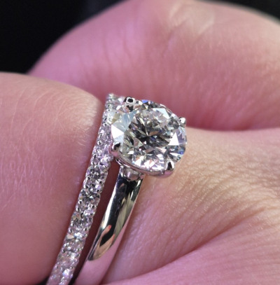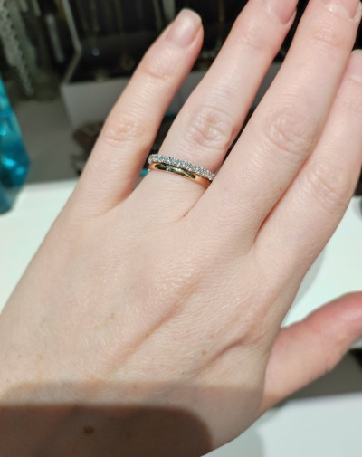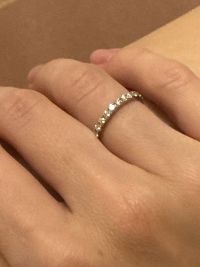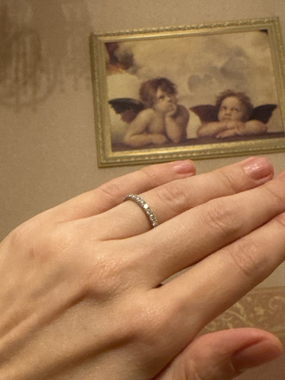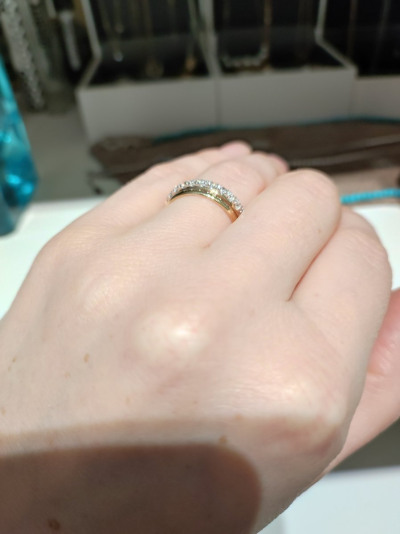 Выбрала это кольцо, так как оно идеально подошло с кольцу с одиночным бриллиантом, камни не закрывают основной, при этом дополняют общий внешний вид, более крупные камни смотрятся менее выигрышно в этой паре. Надеюсь на надежную закрепку камней и пожизненную гарантию от производителя.