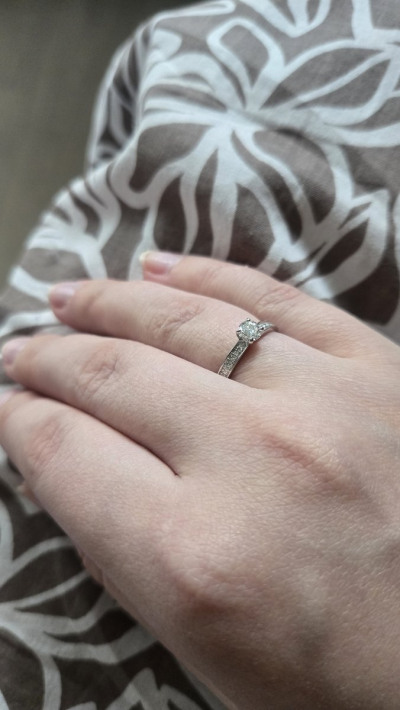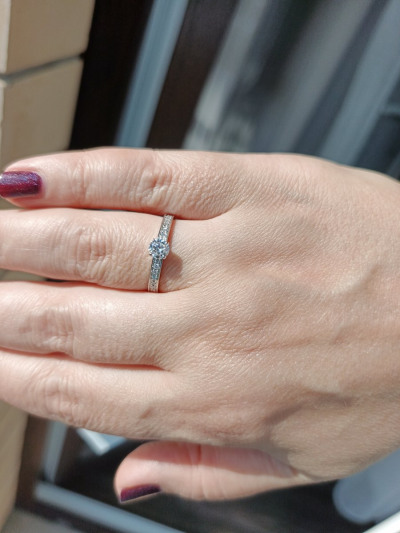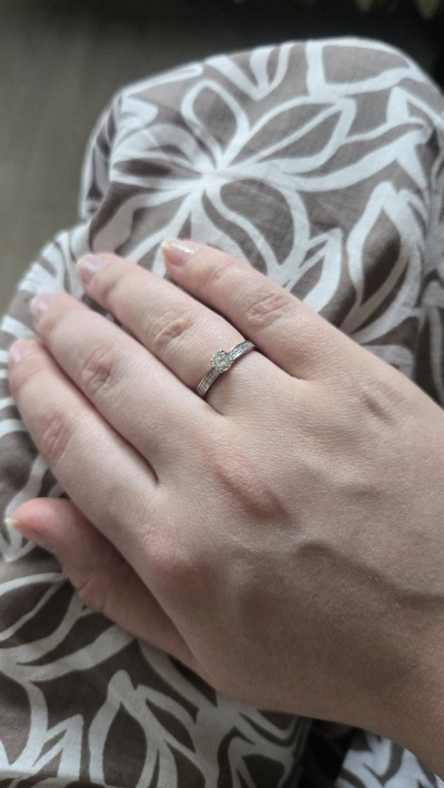 Решила первый раз приобрести кольцо с выращенными бриллиантами, всегда были только с настоящими, очень красивое, на солнце блестит, смотрится не хуже чем с натуральными камнями