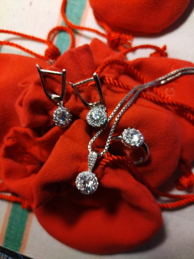 Куплены подвеска, серьги и кольцо, получился прекрасный комплект. Довольна очень.