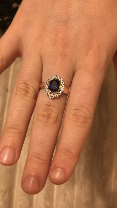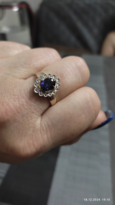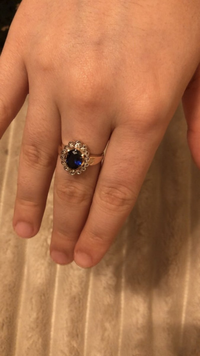 Очень красивое внушительное кольцо! Самое любимое! Брали на подарок дочери на День рождения. Дочь в полном восторге! Красиво мерцают бриллианты, сапфир шикарный! Всем рекомендую к покупке!