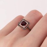 Золотое кольцо с бриллиантами природными и гранатами природными