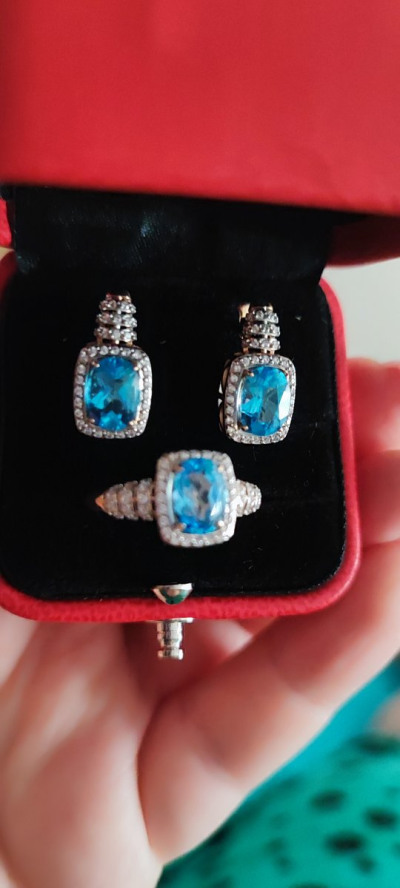 Сначала купила серьги, а через пару дней - кольцо. Шикарный комплект. Переливается очень красиво.