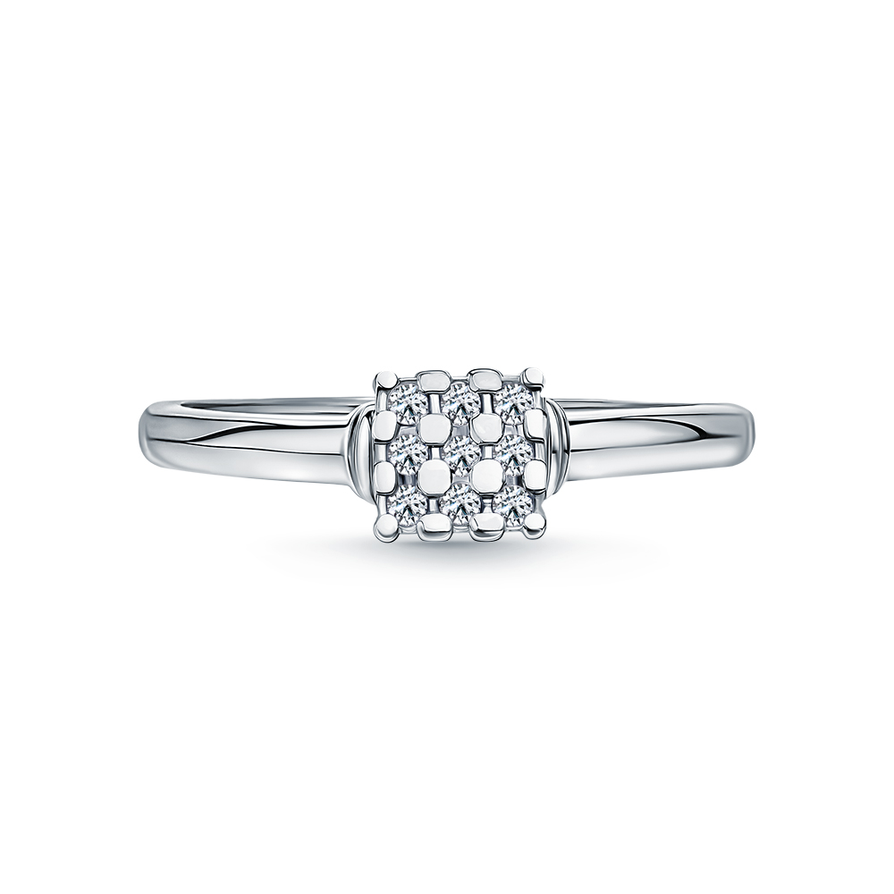 Кольцо с 9 бриллиантами природными, 0.07 карат, огранка круг 57 граней, цвет 3, чистота 6, тип огранки А;