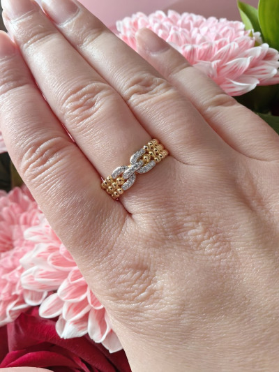 Интересное кольцо с минималистичным необычным дизайном. Сейчас модно сочетание золотого и серебра. А цена вообще сказка. Смотрится здорово, мне очень понравилось!
