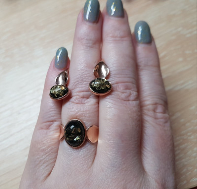 Очень довольна покупкой. Заказала сразу комплект серьги и кольцо. Выглядит достойно, ничего лишнего, плавные изгибы. Янтарь простр волшебный. Именно такой цвет и хотела. Идиальное украшееик на каждый день. Спасибо 💚