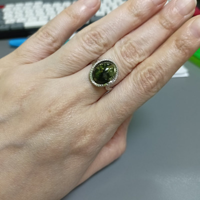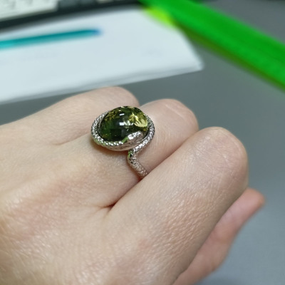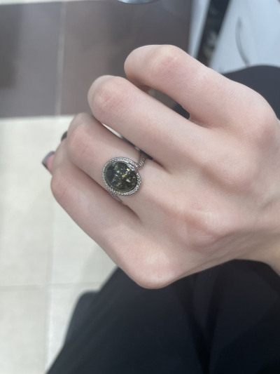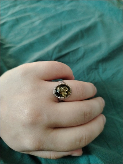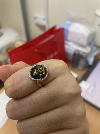 Кольцо очень красивое, змейка обвивает палец и ложится колечком вокруг янтаря.