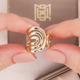 Кольцо, конечно, балдежное, не знаю почему так мало отзывов. Хотя, честно, говоря, не обращала на него внимание пока консультант не предложила его померить. Единственное, промахнулась с размером. Мерила в размер, не понравилось как село, т.к. пальцы не тонкие и изящные немного походило на перетянутую колбаску, особенно при отёке. В наличии было на размер больше и оно велико, болтается. На пол размера было бы как раз: не слишком тесно, не слишком свободно. Внутренние полудуги можно немного прижать к пальцу и таким образом подрегулировать размер чуть поменьше, кольцо становится немного объемным.