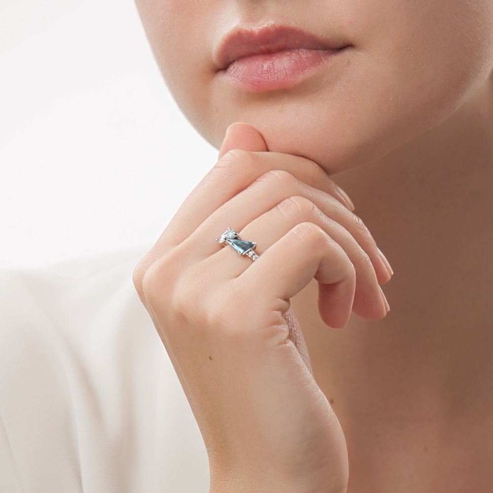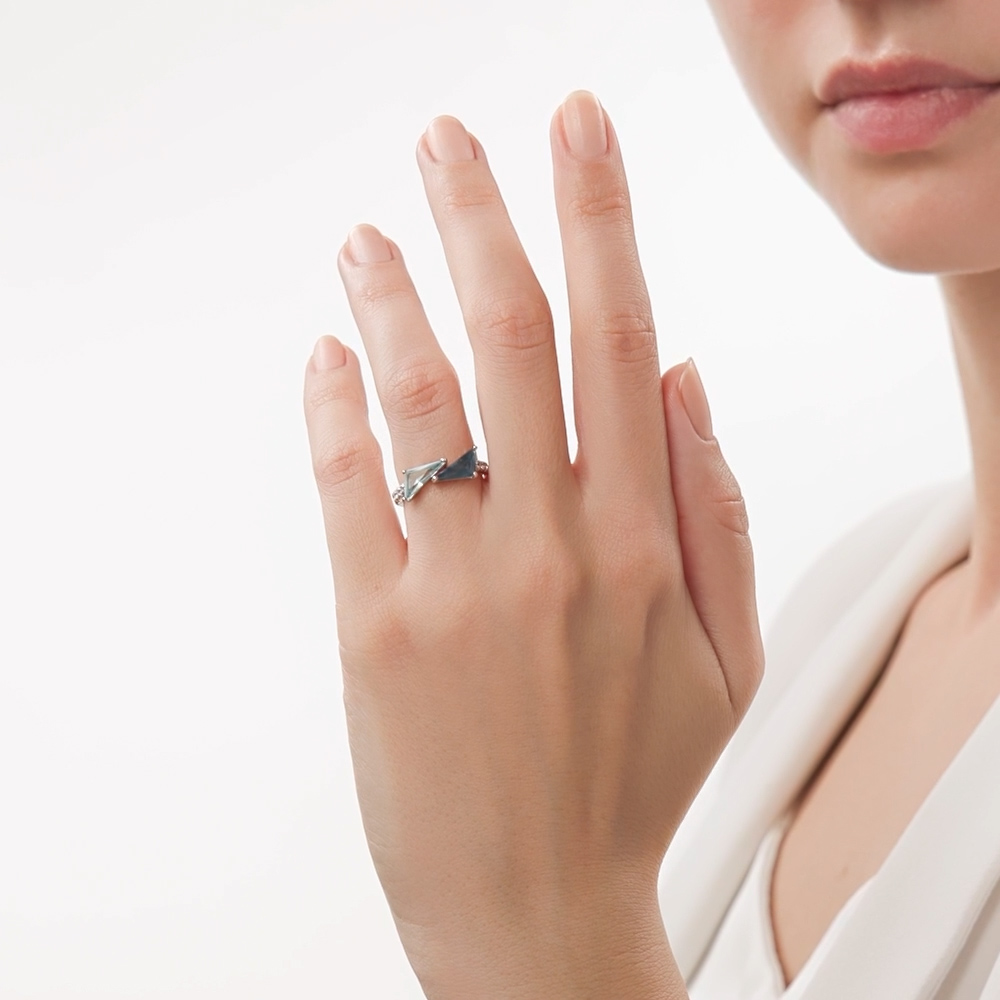 Симпатичное кольцо, будто две льдинки) Смотрится аккуратно