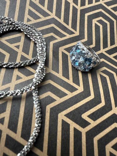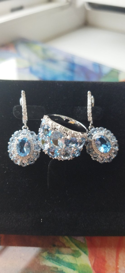 Подобрала красивое кольцо к серьгам с голубыми камушками, получился комплект.