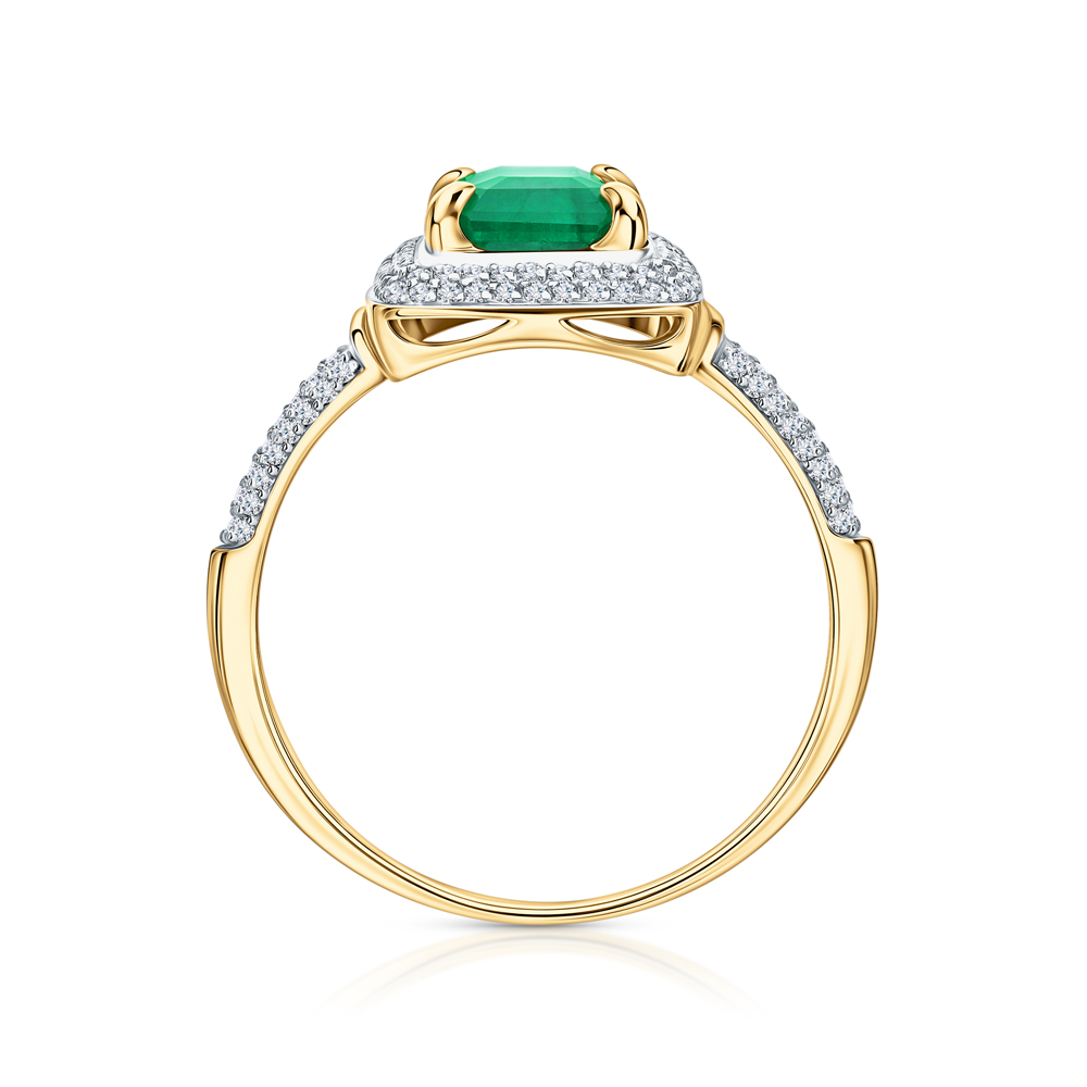 Золотое кольцо с бриллиантами природными и изумрудами природными