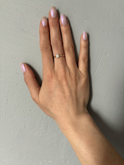 Началось все с сережек) В итоге выкупила весь комплект: сережки, браслет и соответственно колечко;) Колечко очень милое, понравилось. Удобное, ношу с удовольствием!!!!