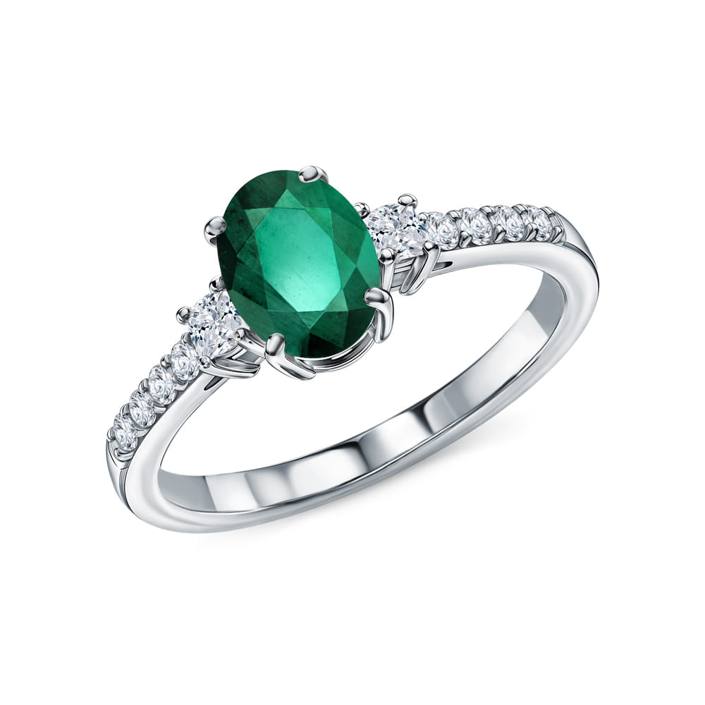 Золотое кольцо с бриллиантами природными и изумрудом природным