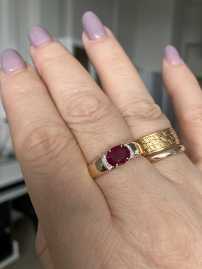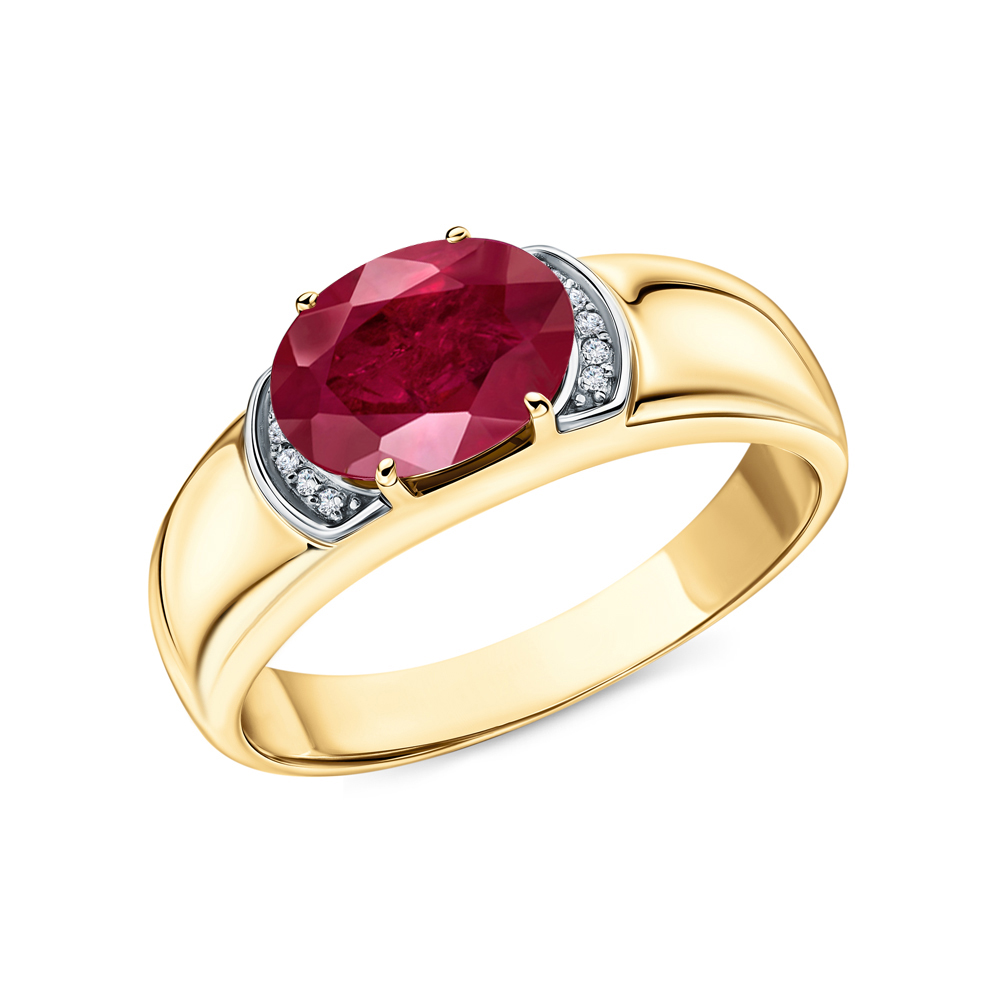 Золотое кольцо с бриллиантами природными и рубинами природными