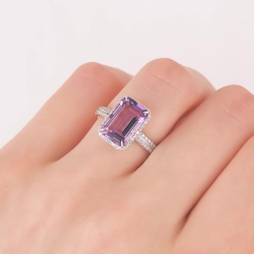 Золотое кольцо с бриллиантами природными и аметистами природными