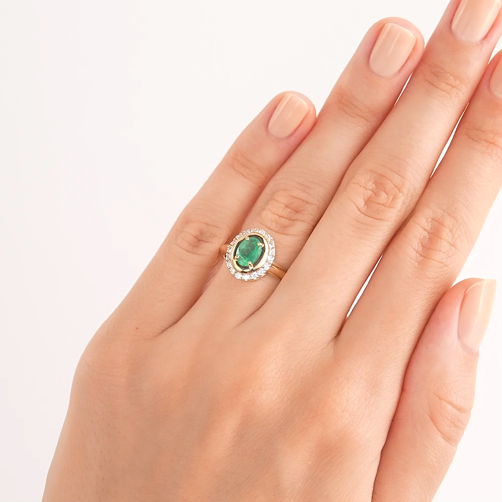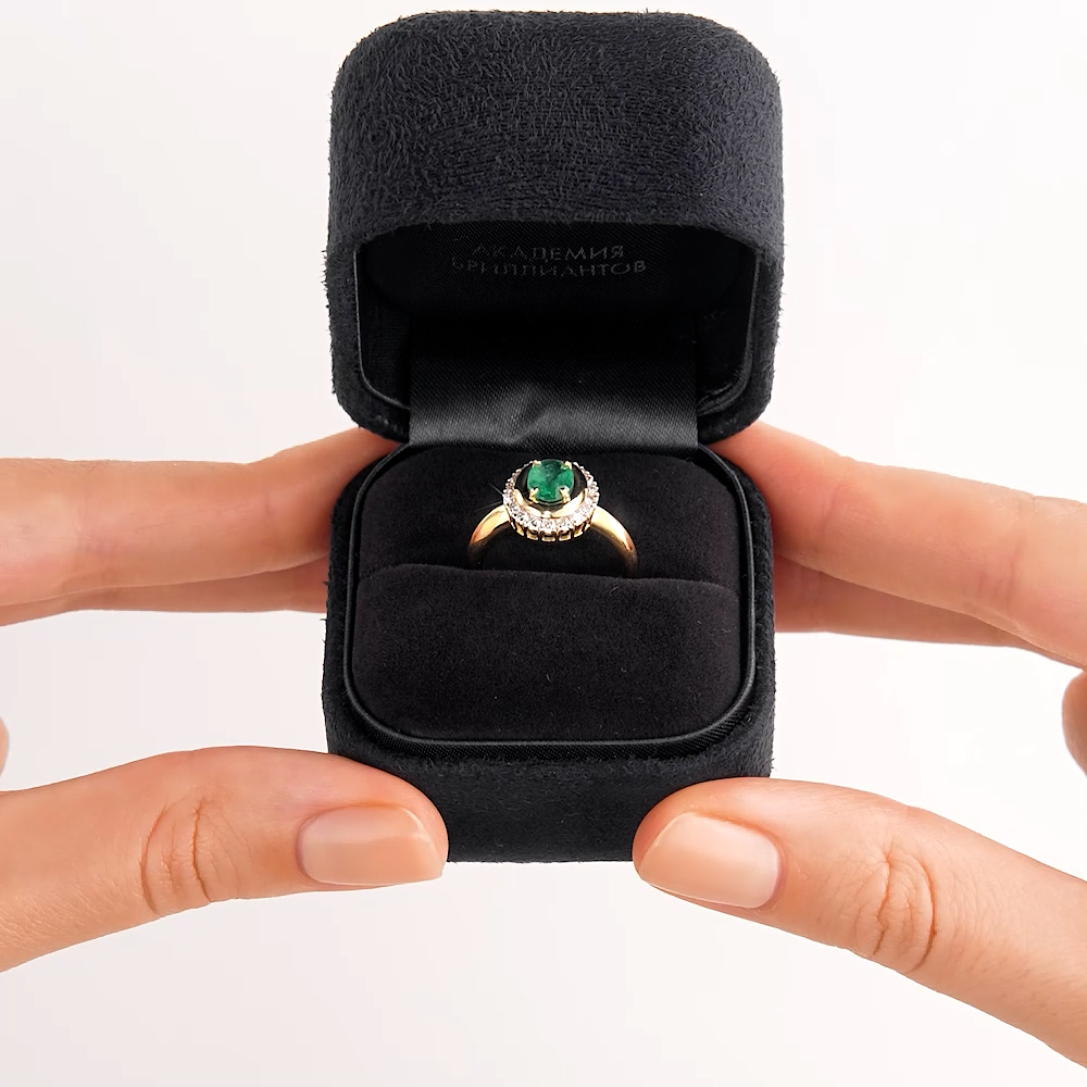 Золотое кольцо с бриллиантами природными и изумрудами природными