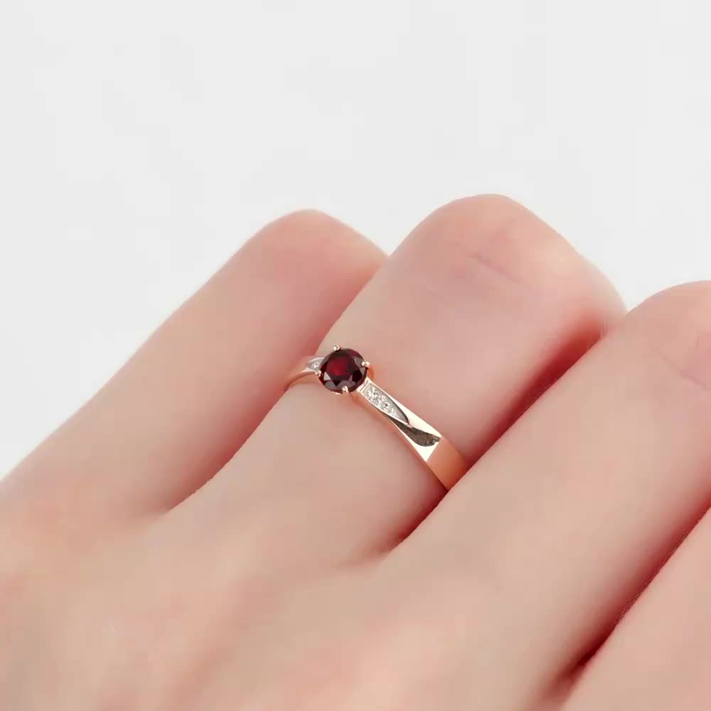 Золотое кольцо с бриллиантами природными и гранатами природными