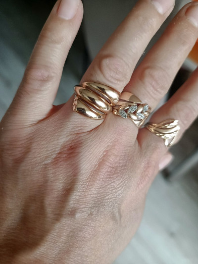 Кольцо очень понравилось, правда я думала оно будет покрупнее, ну и цена завышена для такого изделия, не смотря на всё это, оно очень приятное, отлично сидит на пальце, идёт размер в размер, на кончиках декоративных элементов с обеих сторон имеется алмазная грань☺️