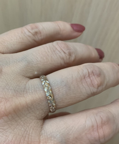 Колечко понравилось: необычный рисунок, легкое, не широкое, но и не тонкое, переливается на солнышке, к сожалению, камера не передает всей красоты
