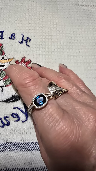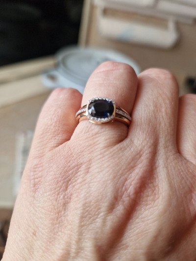 Глубокий цвет сапфира, отменное качество. Фото не передаёт почти ничего. Бриллианты хотя и маленькие, но за счёт огранки сверкают и подчёркивают сапфир. Камень достойного размера.