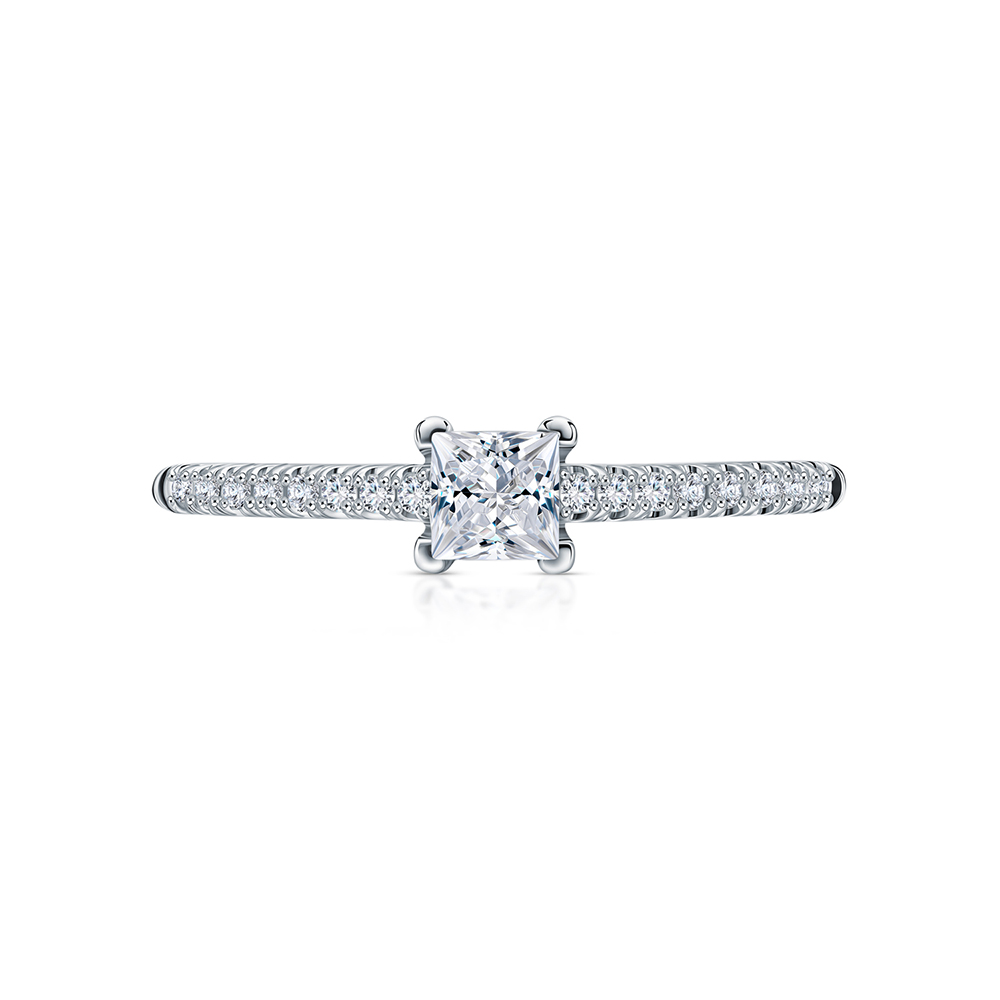 Кольцо с 1 бриллиантом природным, 0.24 карат, огранка принцесса 65 граней, цвет 3, чистота 6, тип огранки А;