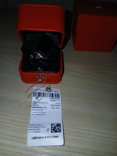 В редких случаях характеристики украшения или упаковка могут иметь отличия от представленных на фото или в описании.Кольцо с 1 аметистом природным, 0.63 карат;