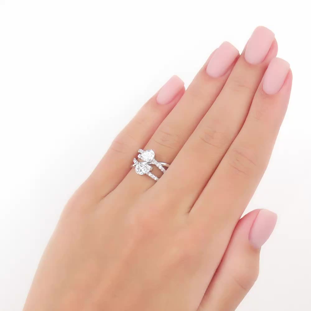 Кольцо с 2 бриллиантами выращенными, 1.28 карат, огранка груша 56 граней, цвет 4, чистота 5, тип огранки А;