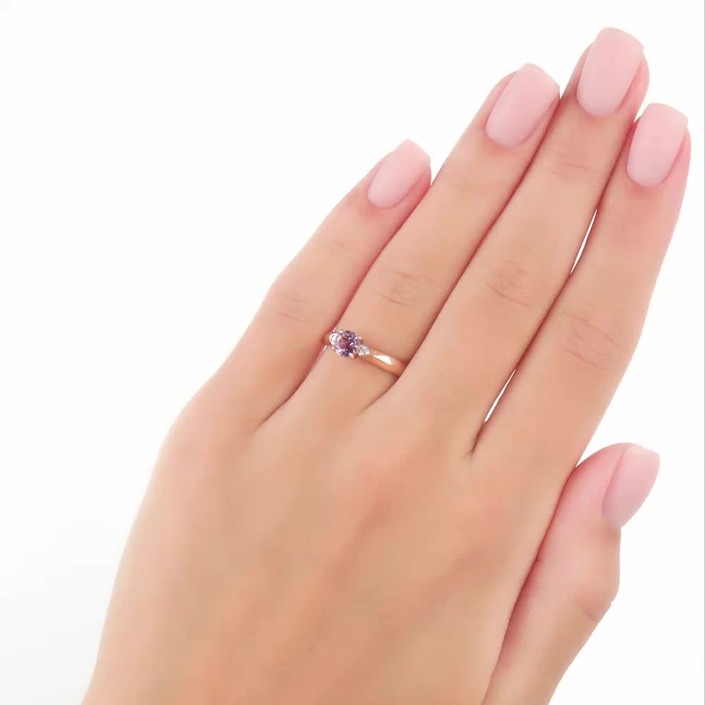 Золотое кольцо с бриллиантами природными и аметистами природными